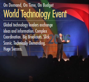 Lots of companies call themselves "full service", but really only have experience in one or two aspects of production. Kirsh Productions is expert in all aspects of production. We've worked on six continents. We have a formidable list of Clients whose names you'll recognize, but we're equally proud of what we've done for innumerable lesser-known firms and organizations - producting smaller meetings and events with the same attention to detail as the big ones.